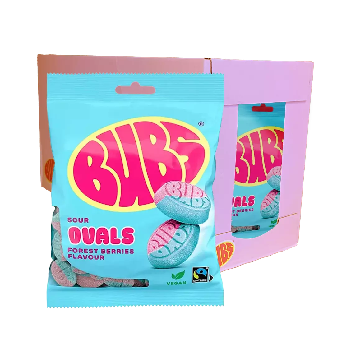Sokeri, glukoosi-fruktoosisiirappi, maissitärkkelys, vesi, happamuudensäätöaineet (omenahappo, natriumsitraatti), perinaproteiini, aromit sekä värit (musta porkkanarikaste, E133). Tuote sisältää makeutusaineita, happamuutta sääteleviä aineita, kasvipohjaisia proteiineja, aromeja sekä väriaineita. Tarkista tuoteseloste aina myös pakkauksesta.
