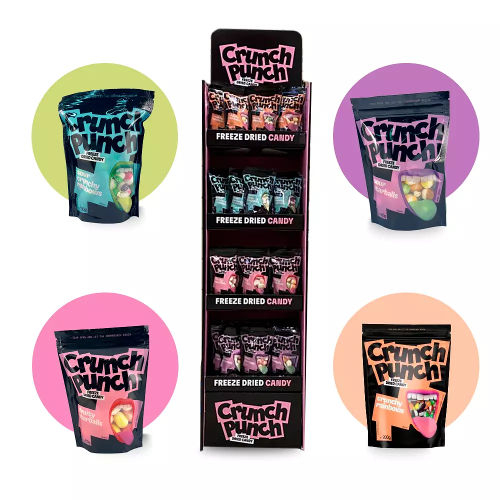 Pakastekuivatut rouskuvan rapeat Crunchy Punchyt ovat täällä! Näitä pakastekuivattuja kirpeitä hedelmäkarkkeja ei voi jättää väliin, ne nimittäin ovat niin mystisen hauskoja suussa, että seuraavaa kourallista jo odottaa suuhunsa, kun ensimmäinen sujahaa kitaan.